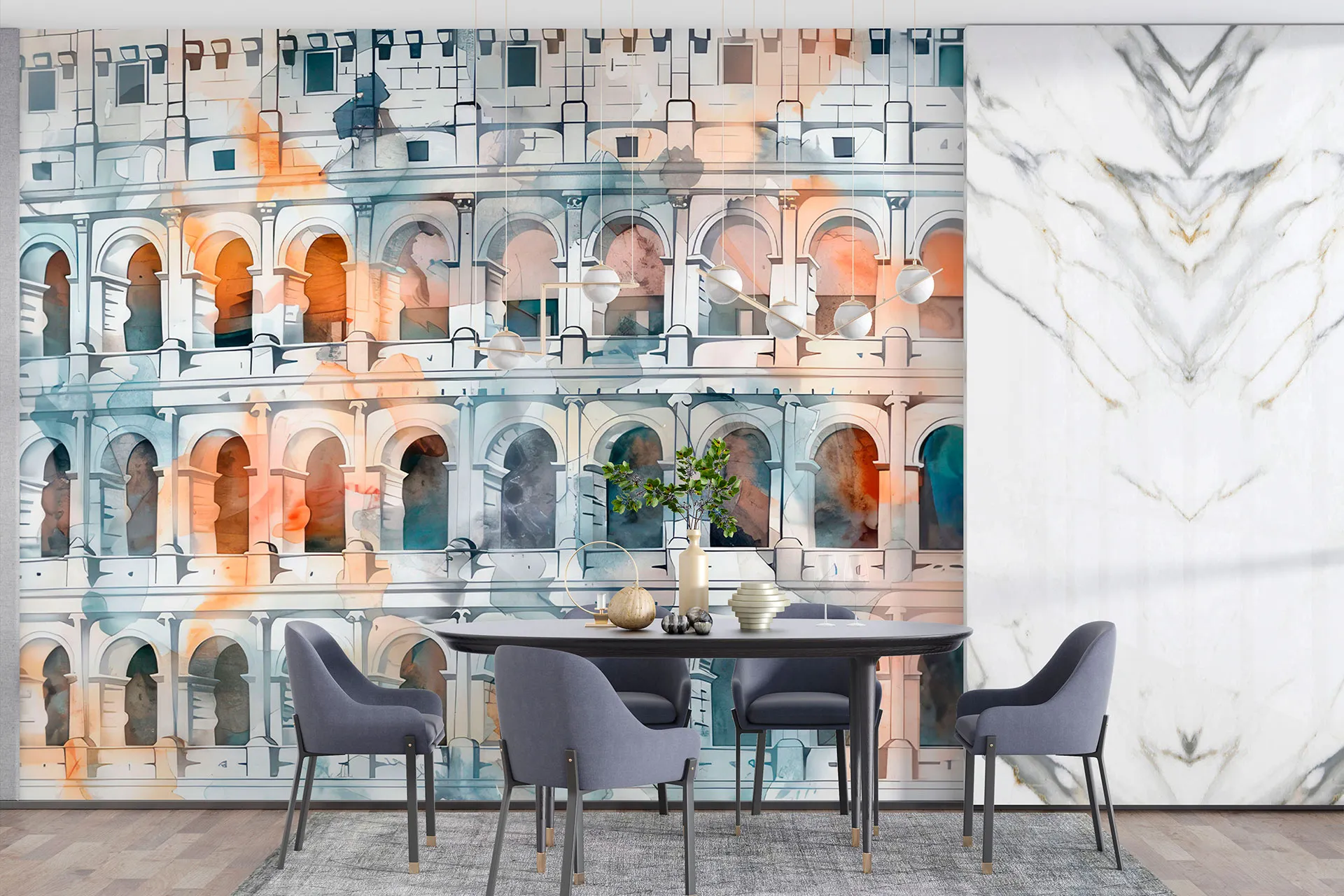 Матеріал преміум ФрескаФлізелін, гаряче тиснення, до 360 г/м² Ціна матеріалу: 589 грн/м² (з урахуванням знижки 45%) Насиченість кольору: 5.0 / 5.0 Преміальна текстура "фреска". Щільний довговічний матеріал, екологічний і естетичний.