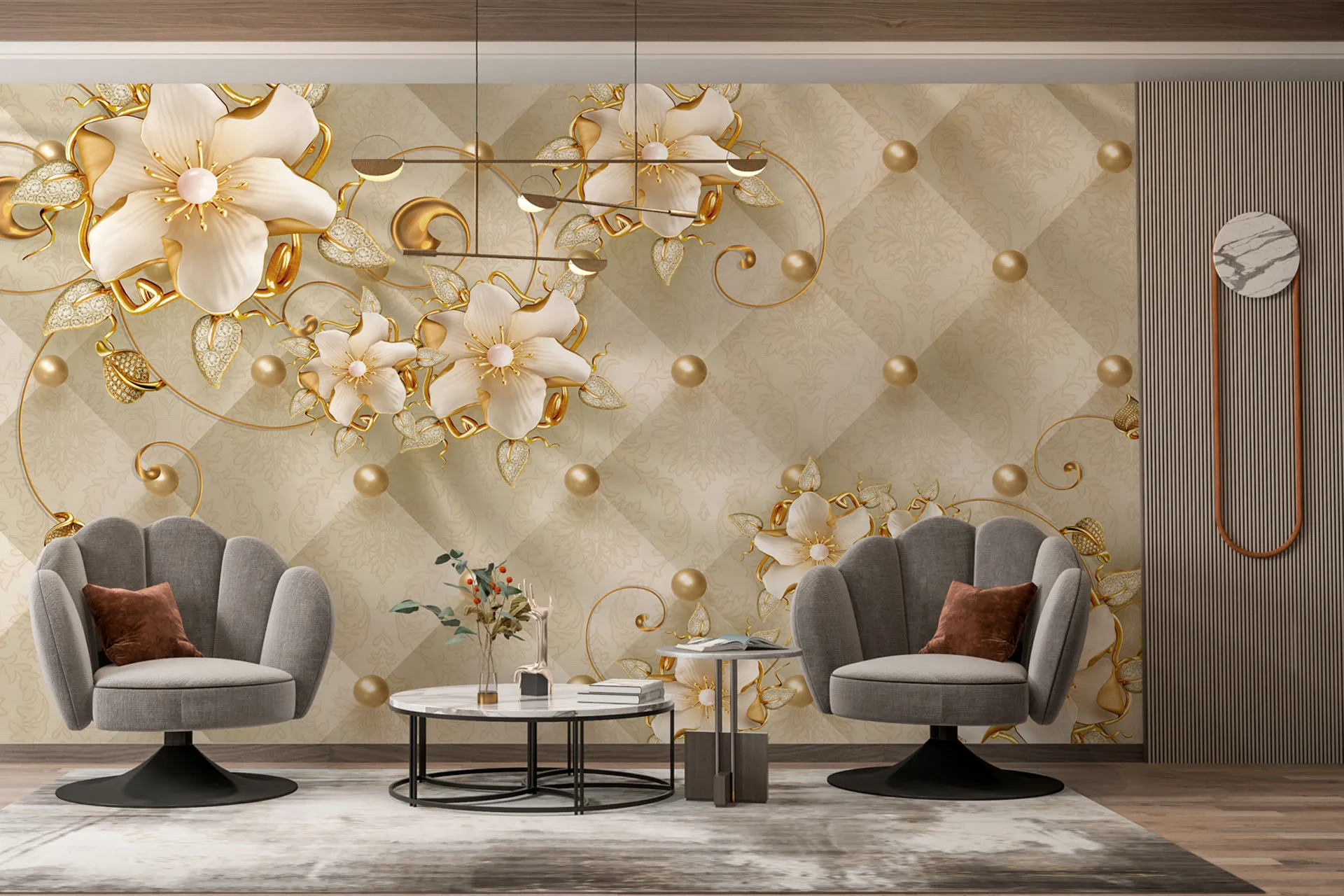 Матеріал преміум ФрескаФлізелін, гаряче тиснення, до 360 г/м² Ціна матеріалу: 589 грн/м² (з урахуванням знижки 45%) Насиченість кольору: 5.0 / 5.0 Преміальна текстура "фреска". Щільний довговічний матеріал, екологічний і естетичний.