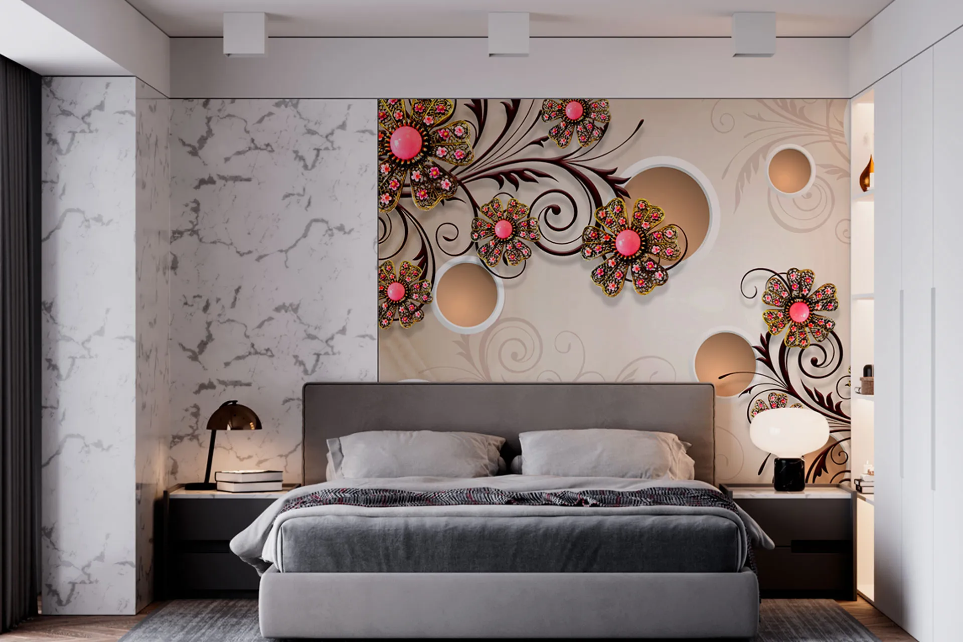 Матеріал преміум ФрескаФлізелін, гаряче тиснення, до 360 г/м² Ціна матеріалу: 589 грн/м² (з урахуванням знижки 45%) Насиченість кольору: 5.0 / 5.0 Преміальна текстура "фреска". Щільний довговічний матеріал, екологічний і естетичний.