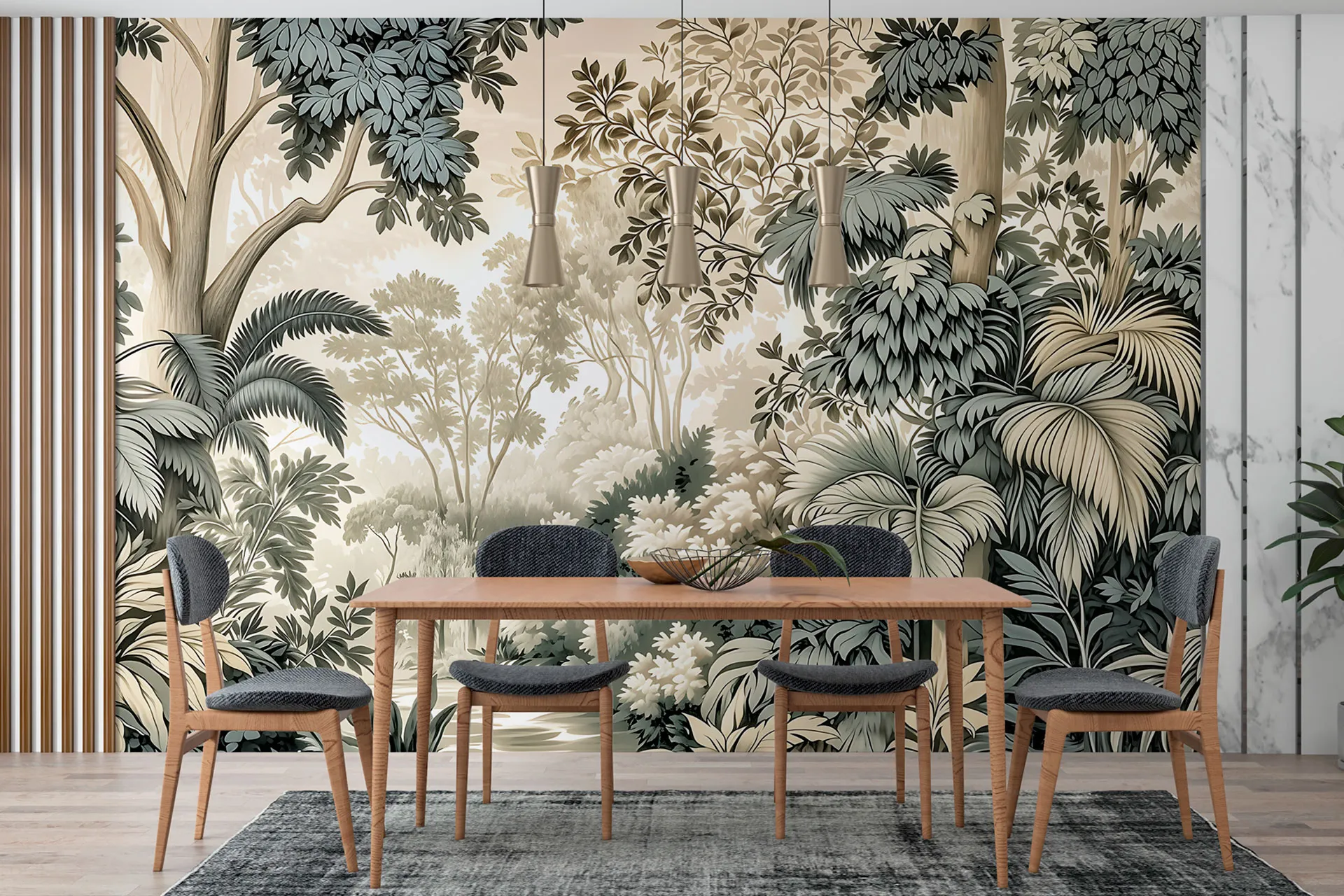 Матеріал преміум ФрескаФлізелін, гаряче тиснення, до 360 г/м² Ціна матеріалу: 589 грн/м² (з урахуванням знижки 45%) Насиченість кольору: 5.0 / 5.0 Преміальна текстура "фреска". Щільний довговічний матеріал, екологічний і естетичний.