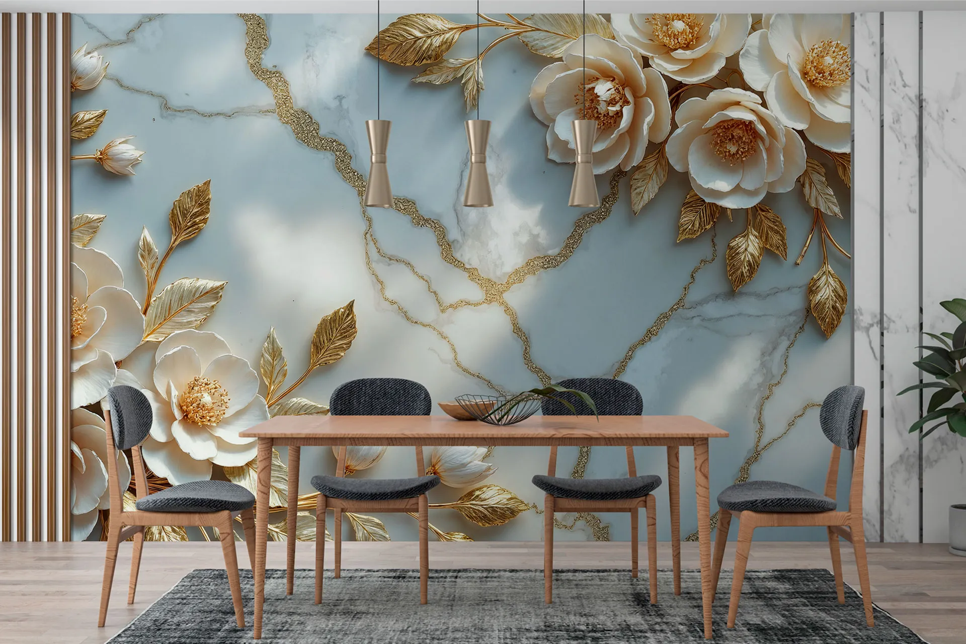 Матеріал преміум ФрескаФлізелін, гаряче тиснення, до 360 г/м² Ціна матеріалу: 589 грн/м² (з урахуванням знижки 45%) Насиченість кольору: 5.0 / 5.0 Преміальна текстура "фреска". Щільний довговічний матеріал, екологічний і естетичний.