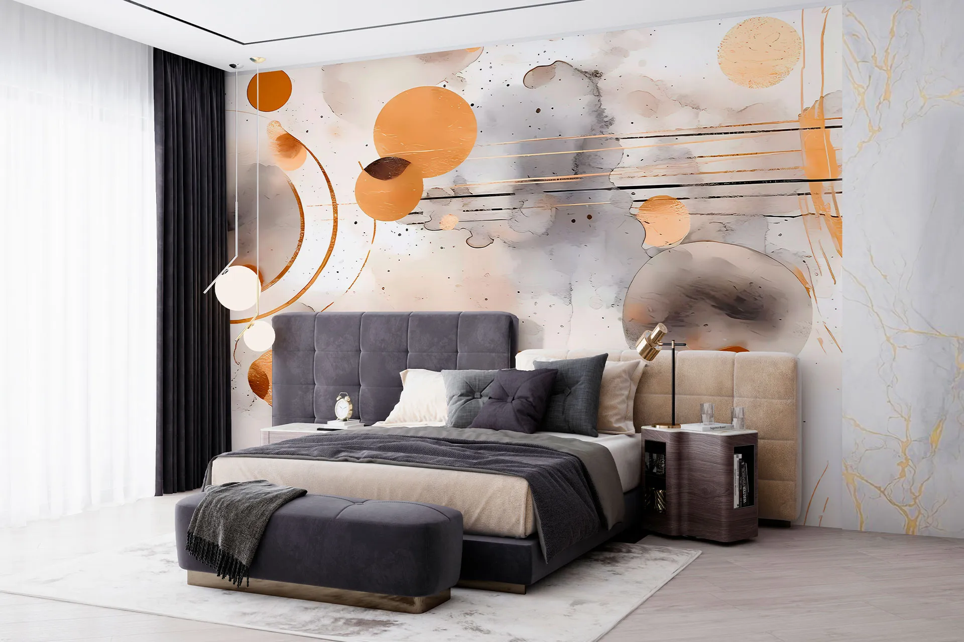 Матеріал преміум ФрескаФлізелін, гаряче тиснення, до 360 г/м² Ціна матеріалу: 589 грн/м² (з урахуванням знижки 45%) Насиченість кольору: 5.0 / 5.0 Преміальна текстура "фреска". Щільний довговічний матеріал, екологічний і естетичний.