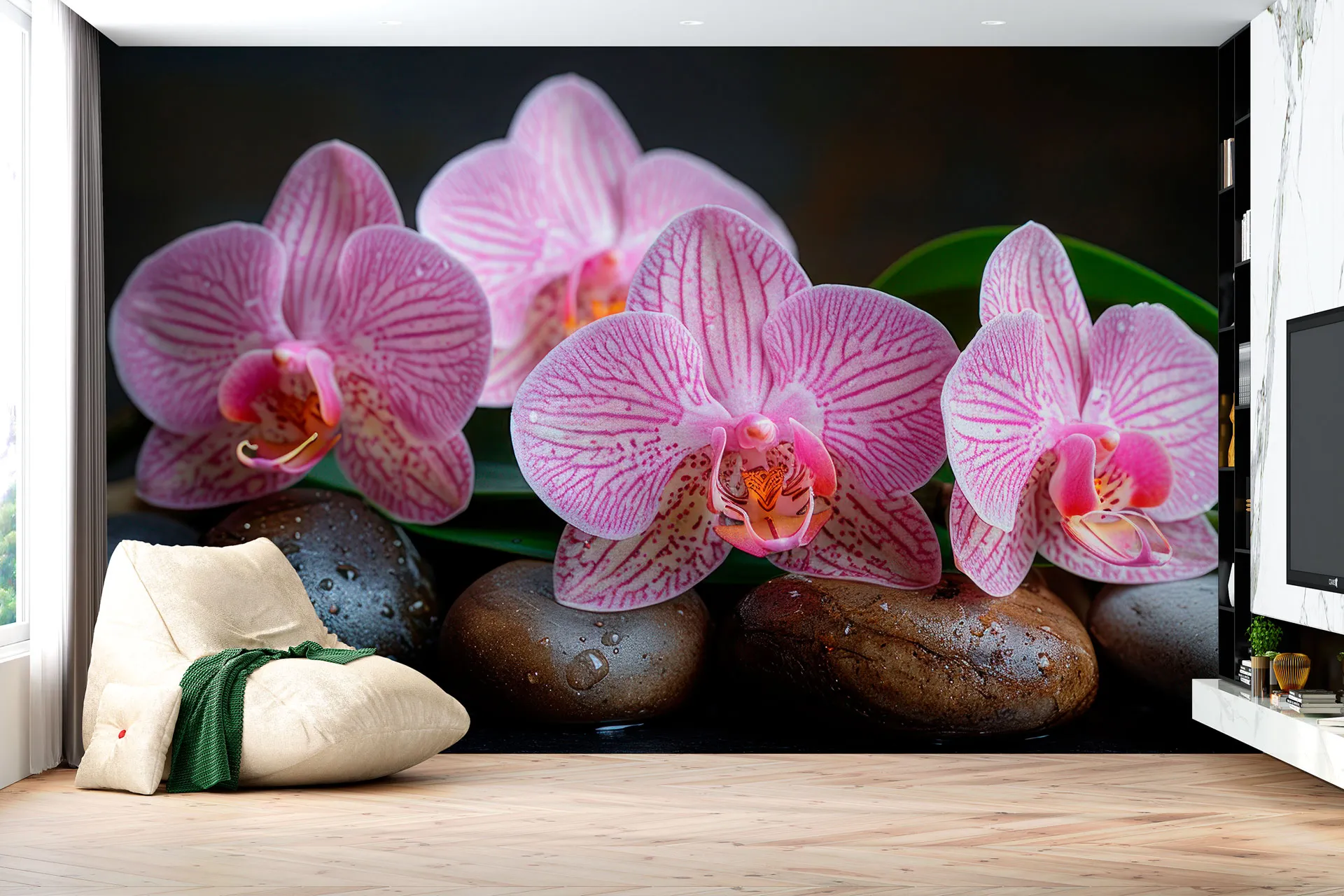 Матеріал преміум ФрескаФлізелін, гаряче тиснення, до 360 г/м² Ціна матеріалу: 589 грн/м² (з урахуванням знижки 45%) Насиченість кольору: 5.0 / 5.0 Преміальна текстура "фреска". Щільний довговічний матеріал, екологічний і естетичний.