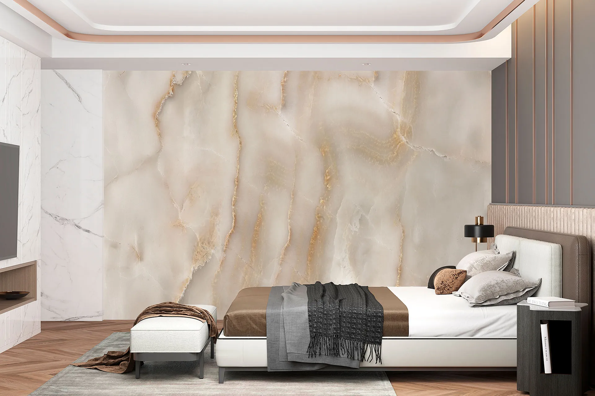 Матеріал преміум ФрескаФлізелін, гаряче тиснення, до 360 г/м² Ціна матеріалу: 589 грн/м² (з урахуванням знижки 45%) Насиченість кольору: 5.0 / 5.0 Преміальна текстура "фреска". Щільний довговічний матеріал, екологічний і естетичний.