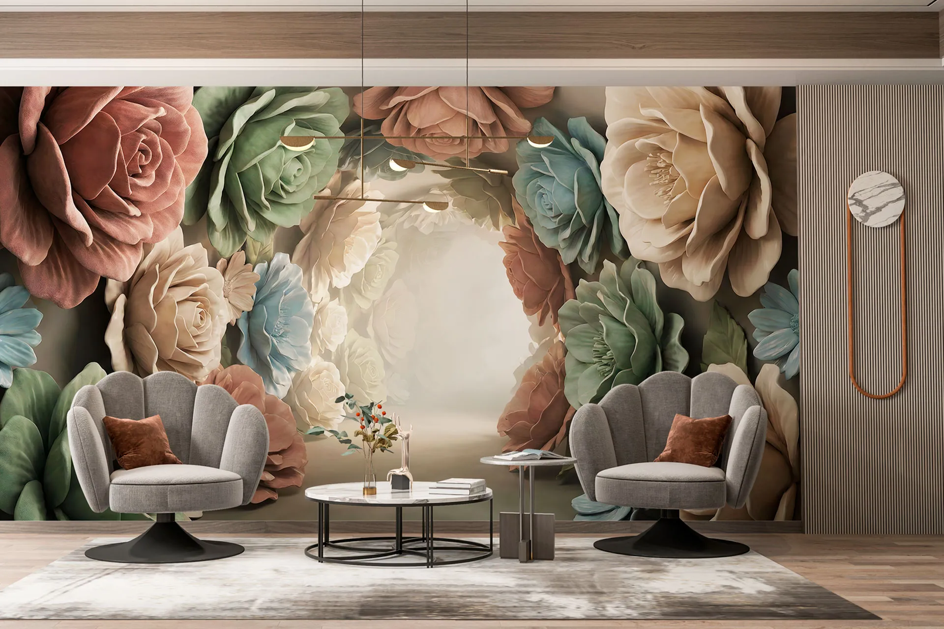 Матеріал преміум ФрескаФлізелін, гаряче тиснення, до 360 г/м² Ціна матеріалу: 589 грн/м² (з урахуванням знижки 45%) Насиченість кольору: 5.0 / 5.0 Преміальна текстура "фреска". Щільний довговічний матеріал, екологічний і естетичний.