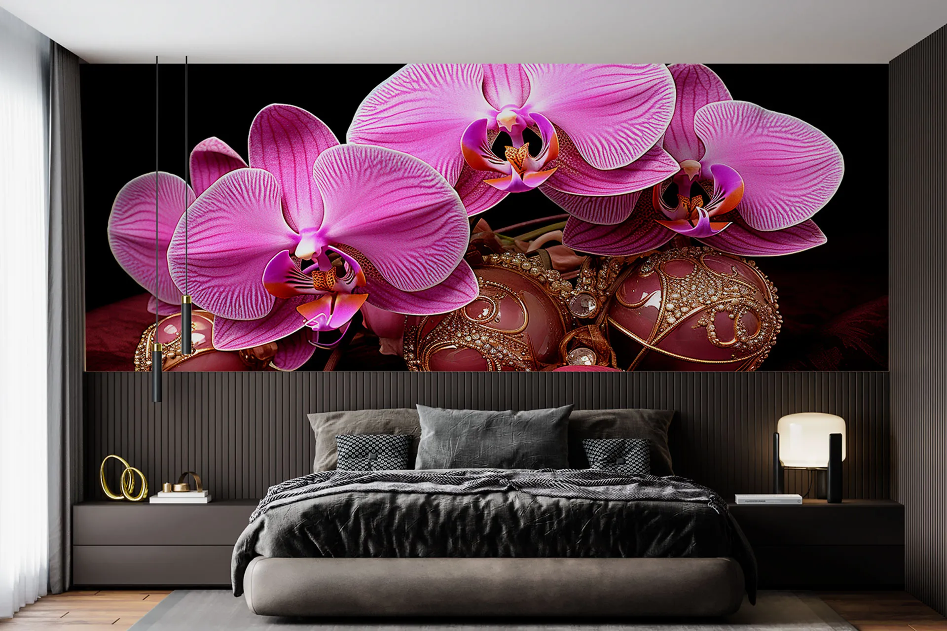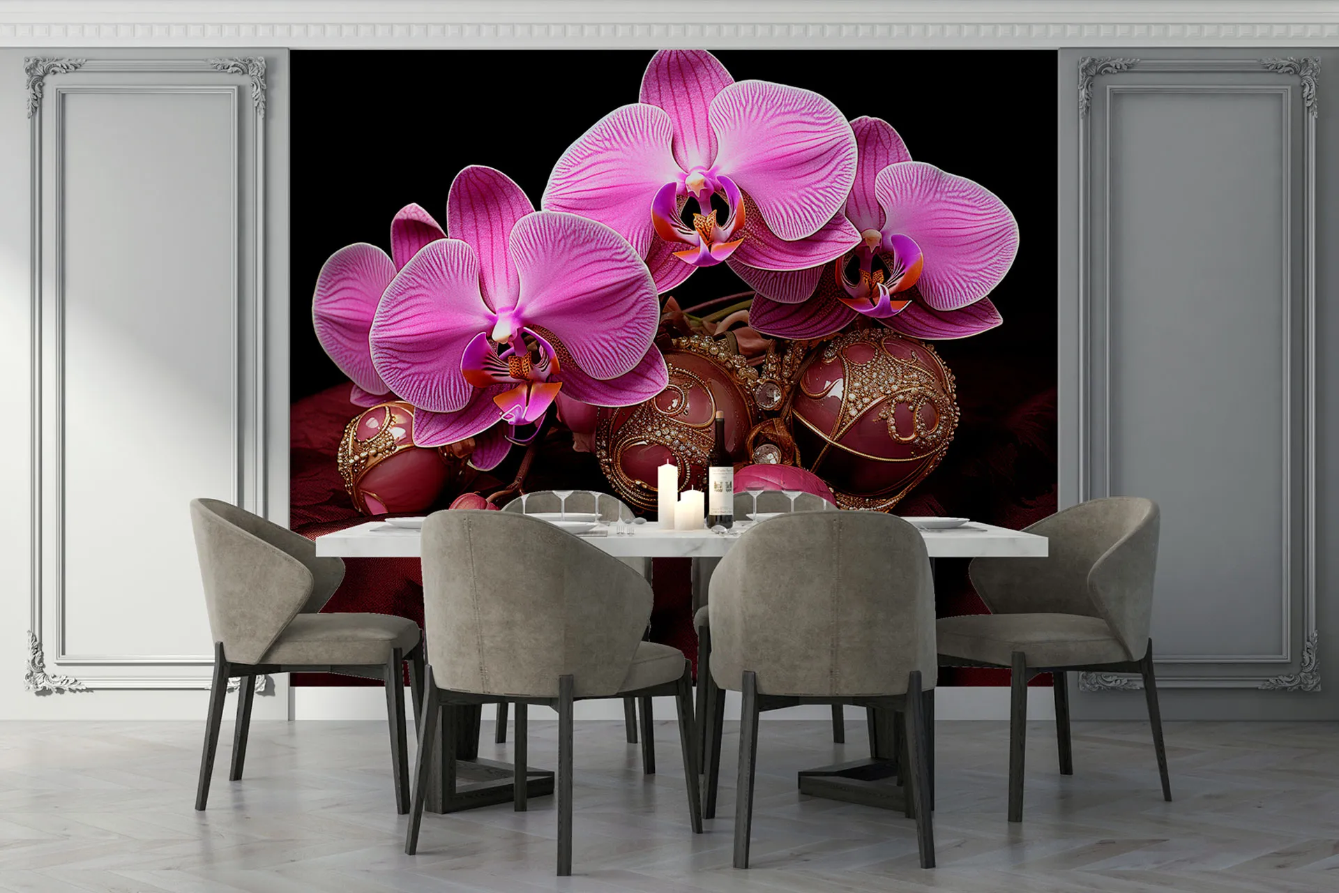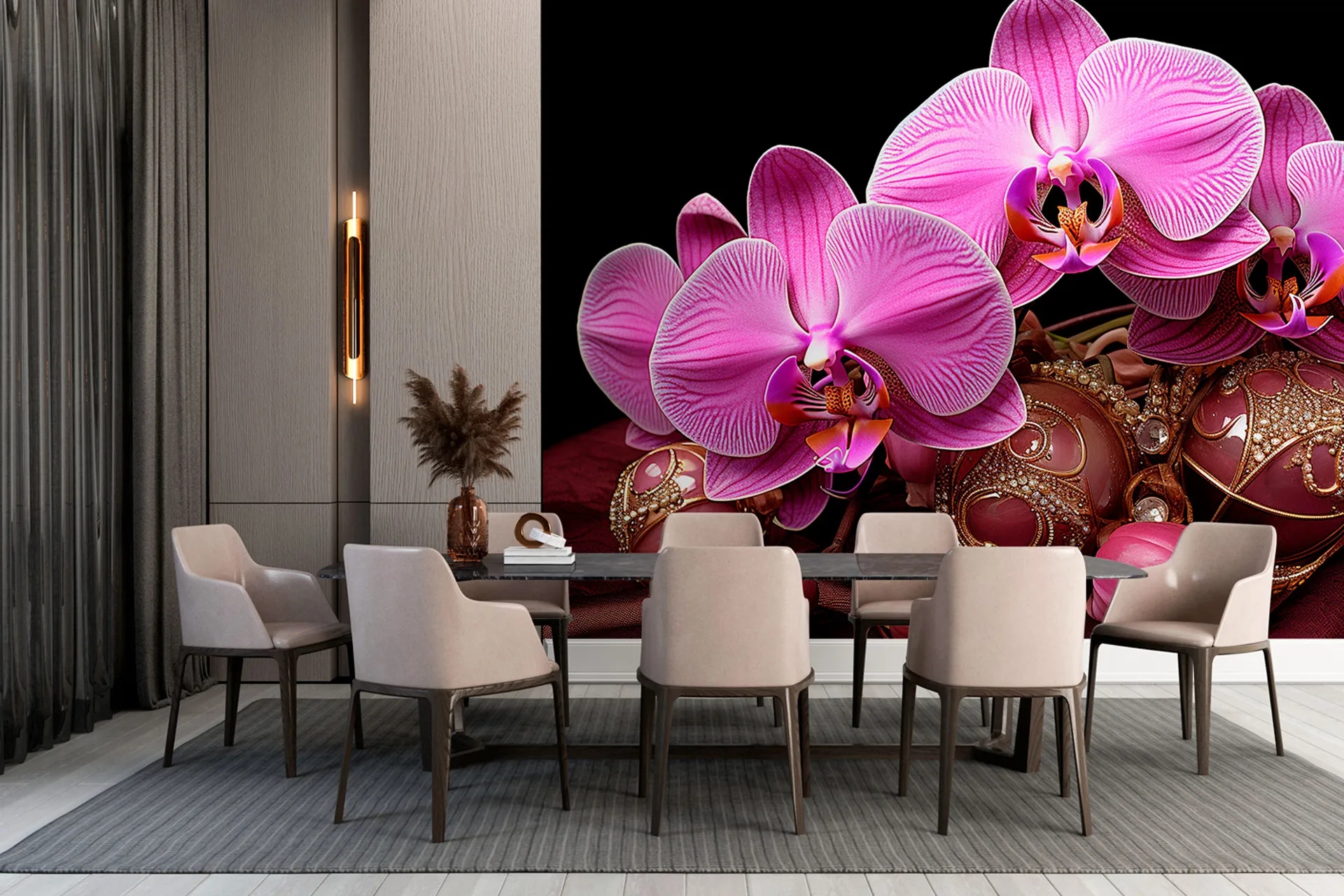 Матеріал преміум ФрескаФлізелін, гаряче тиснення, до 360 г/м² Ціна матеріалу: 589 грн/м² (з урахуванням знижки 45%) Насиченість кольору: 5.0 / 5.0 Преміальна текстура "фреска". Щільний довговічний матеріал, екологічний і естетичний.