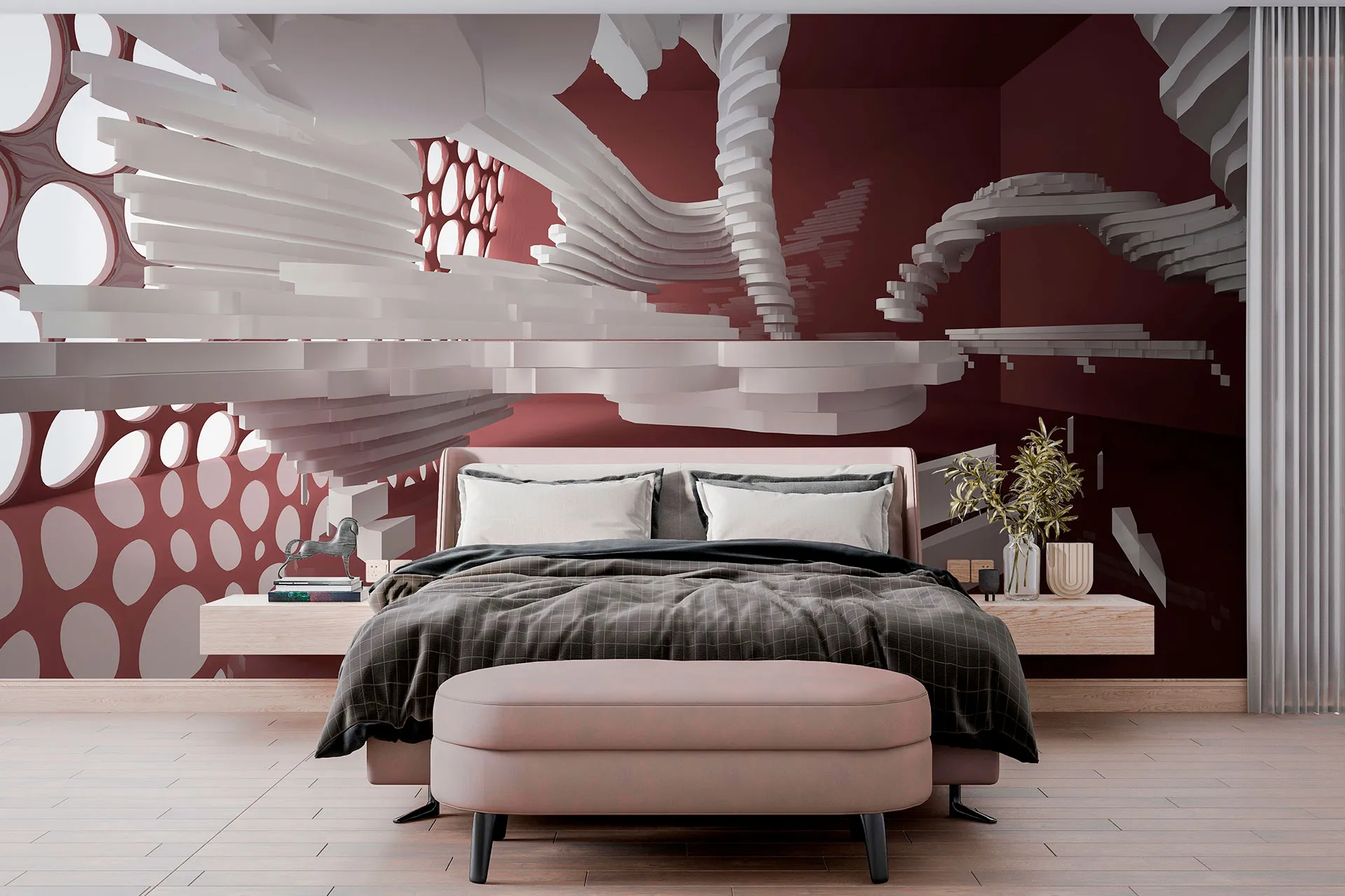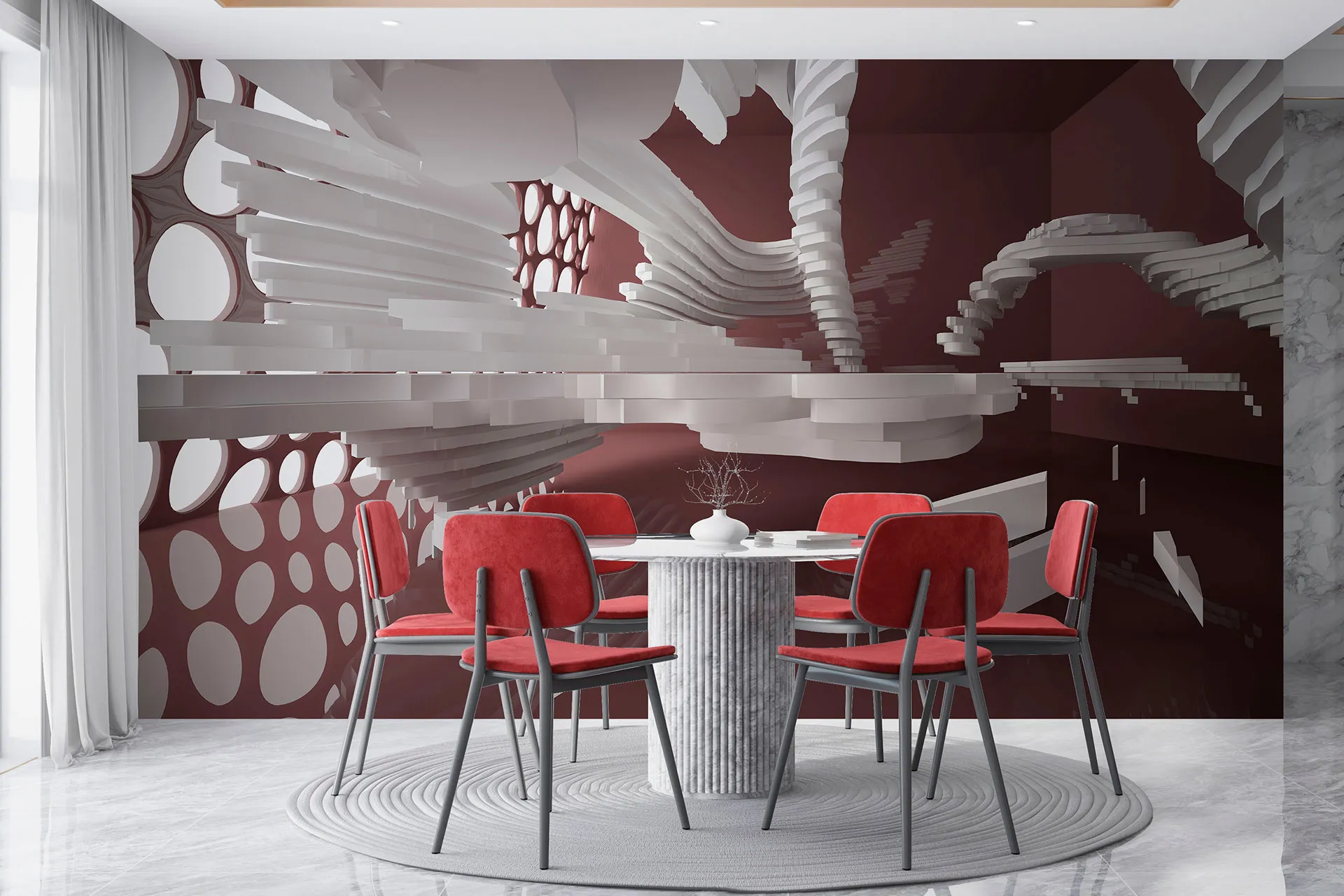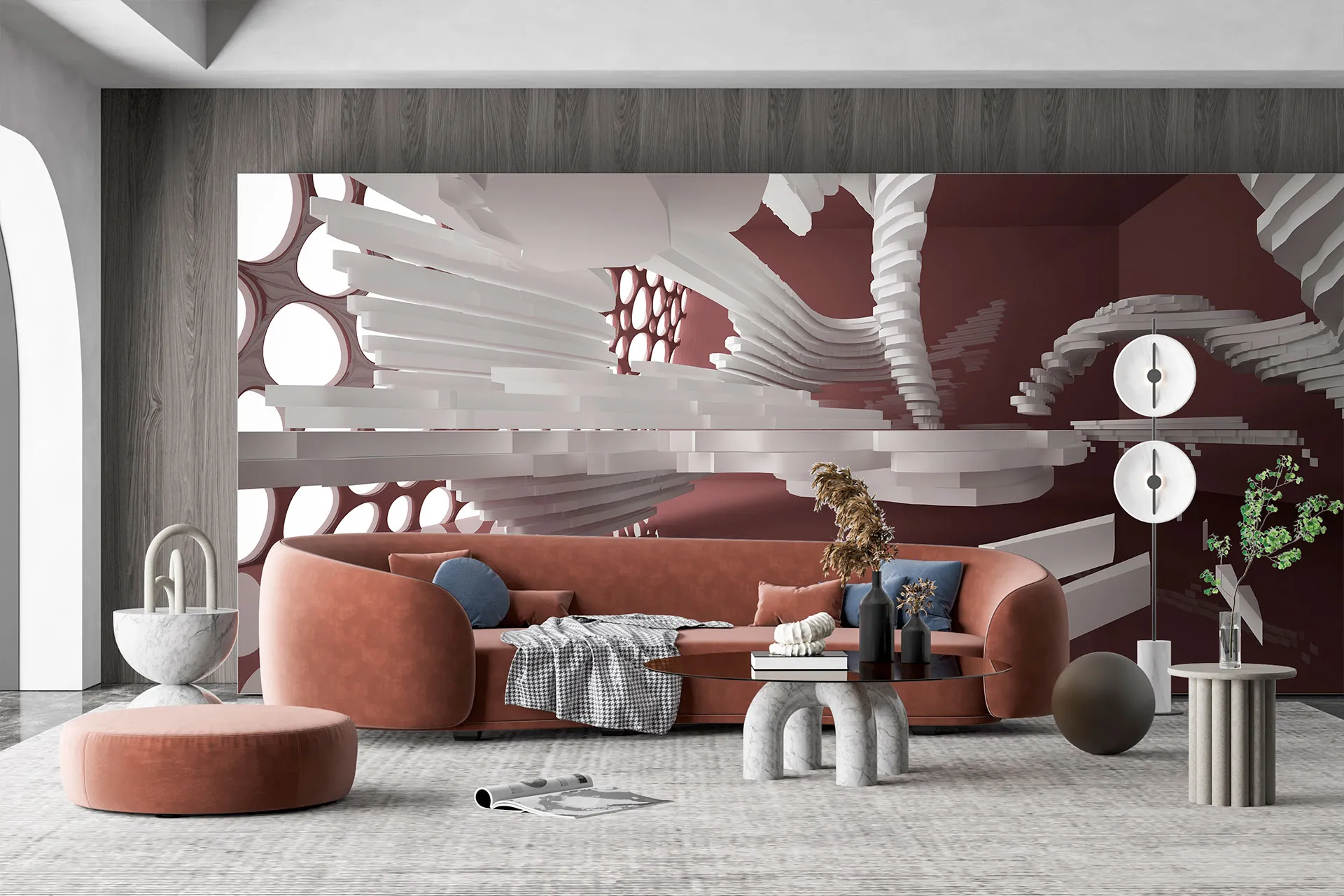 Матеріал преміум ФрескаФлізелін, гаряче тиснення, до 360 г/м² Ціна матеріалу: 589 грн/м² (з урахуванням знижки 45%) Насиченість кольору: 5.0 / 5.0 Преміальна текстура "фреска". Щільний довговічний матеріал, екологічний і естетичний.