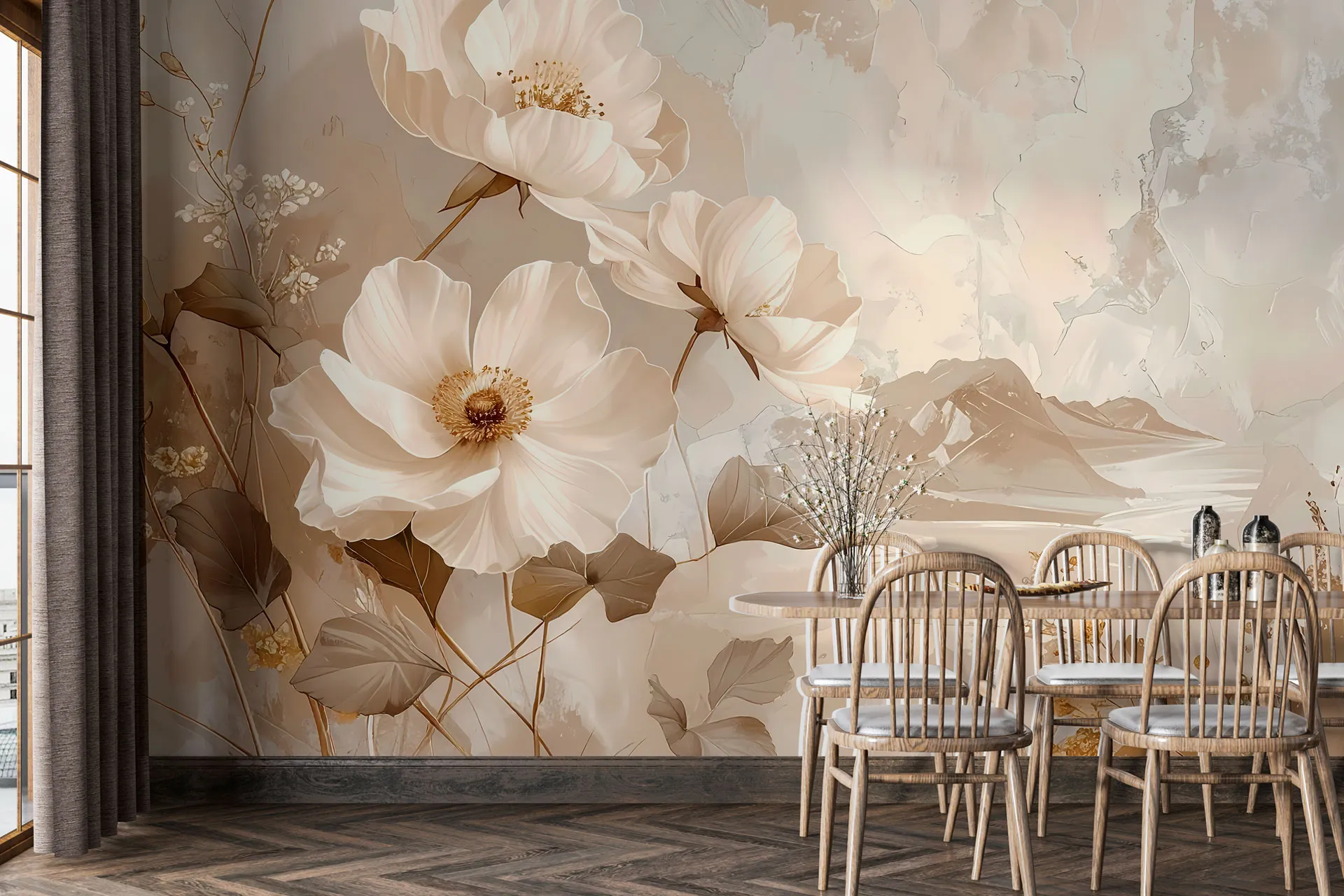 Матеріал преміум ФрескаФлізелін, гаряче тиснення, до 360 г/м² Ціна матеріалу: 589 грн/м² (з урахуванням знижки 45%) Насиченість кольору: 5.0 / 5.0 Преміальна текстура "фреска". Щільний довговічний матеріал, екологічний і естетичний.