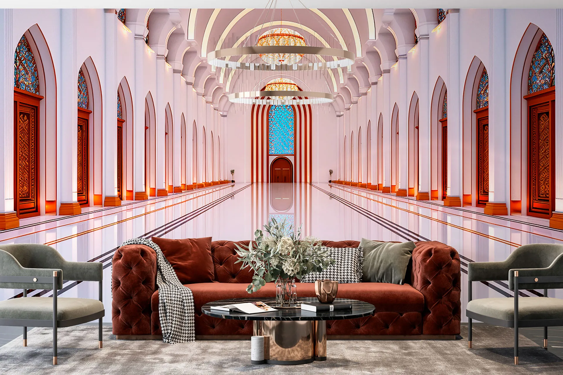 Матеріал преміум ФрескаФлізелін, гаряче тиснення, до 360 г/м² Ціна матеріалу: 589 грн/м² (з урахуванням знижки 45%) Насиченість кольору: 5.0 / 5.0 Преміальна текстура "фреска". Щільний довговічний матеріал, екологічний і естетичний.