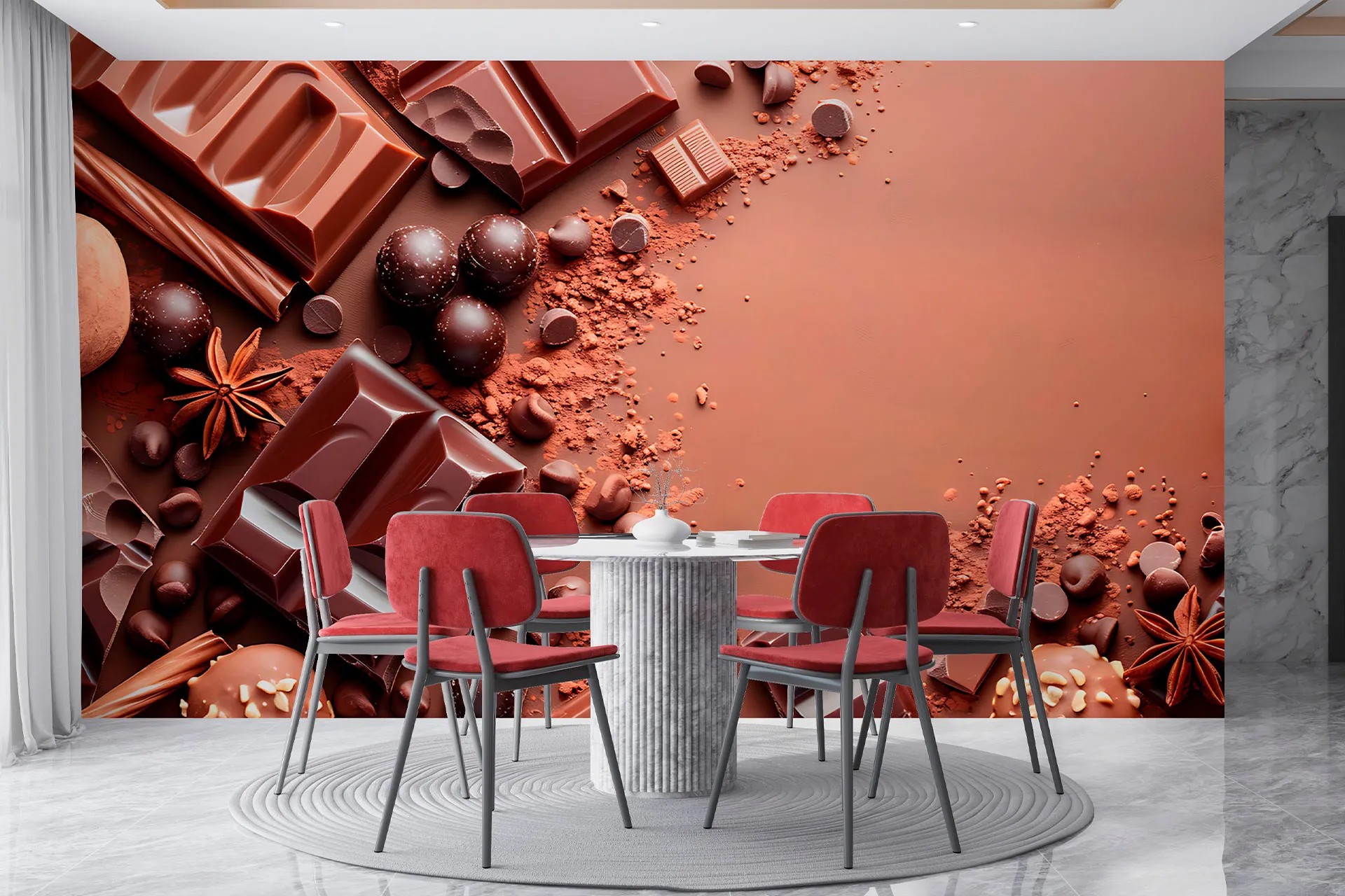 Матеріал преміум ФрескаФлізелін, гаряче тиснення, до 360 г/м² Ціна матеріалу: 589 грн/м² (з урахуванням знижки 45%) Насиченість кольору: 5.0 / 5.0 Преміальна текстура "фреска". Щільний довговічний матеріал, екологічний і естетичний.
