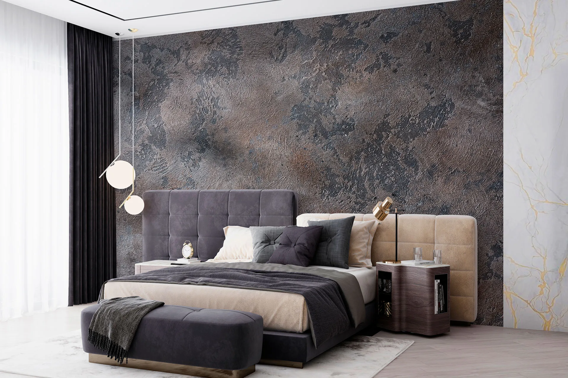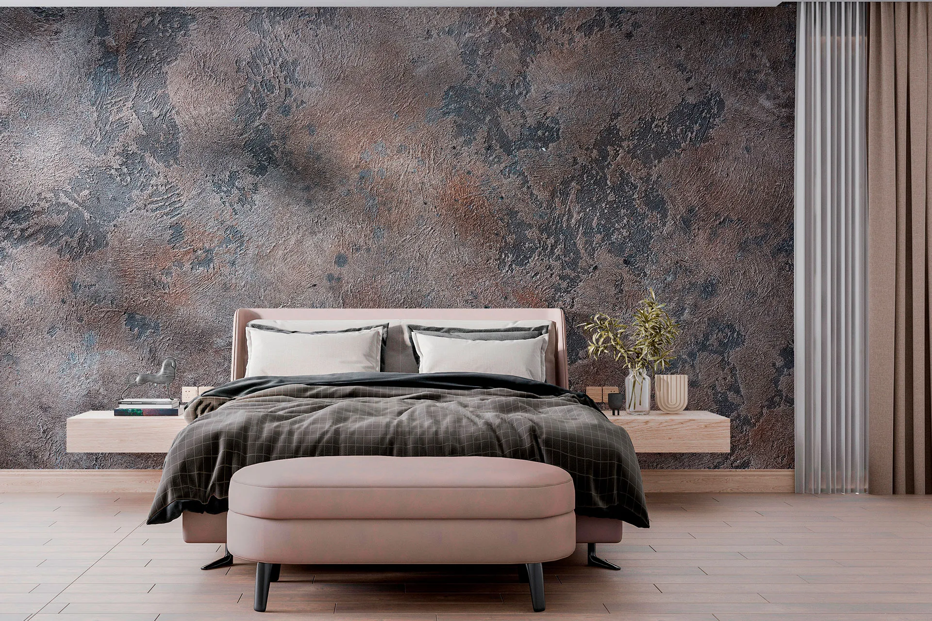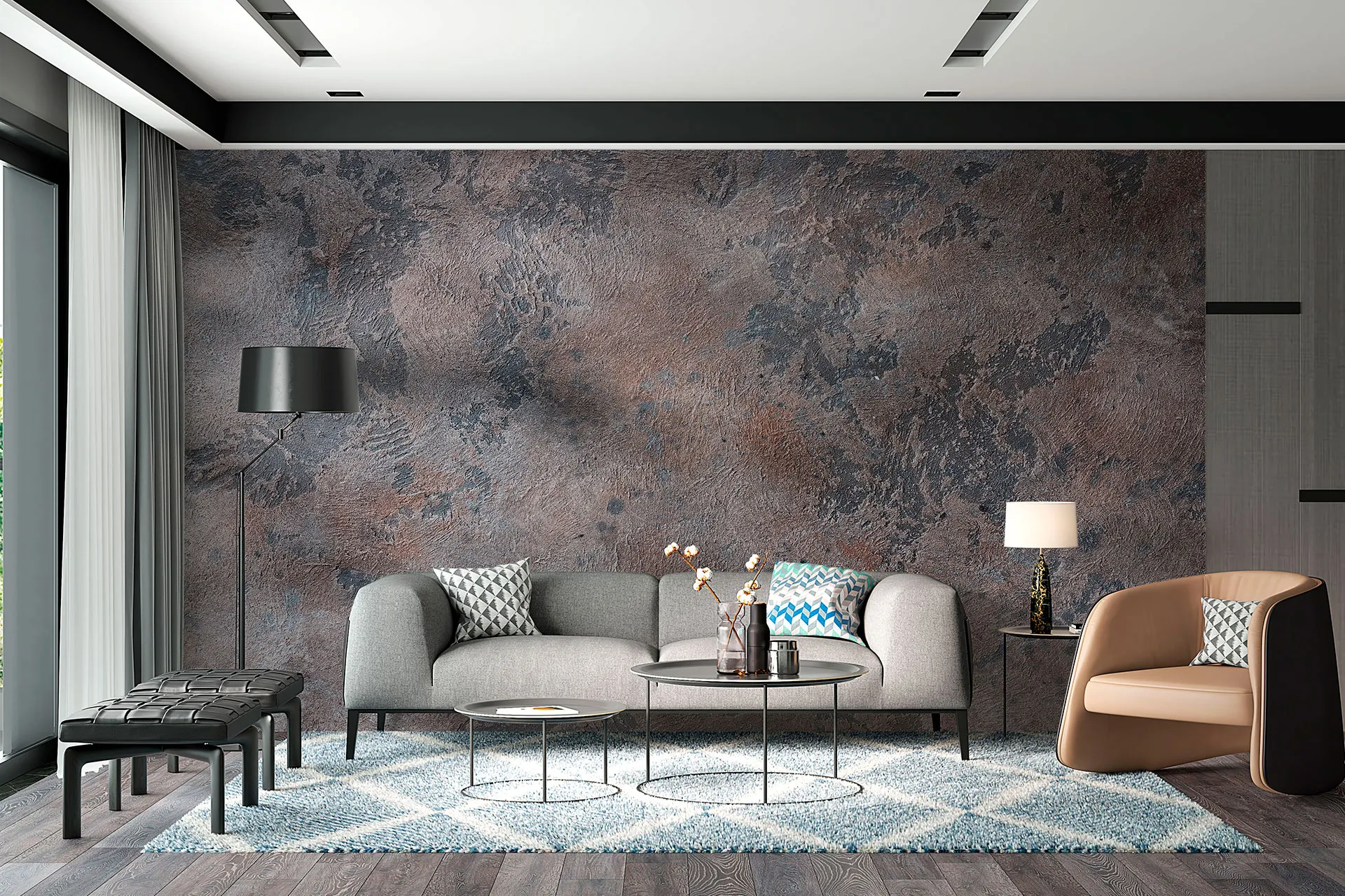 Матеріал преміум ФрескаФлізелін, гаряче тиснення, до 360 г/м² Ціна матеріалу: 589 грн/м² (з урахуванням знижки 45%) Насиченість кольору: 5.0 / 5.0 Преміальна текстура "фреска". Щільний довговічний матеріал, екологічний і естетичний.