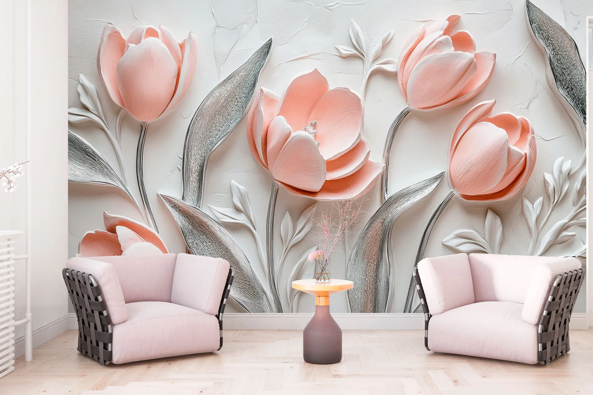 Матеріал преміум ФрескаФлізелін, гаряче тиснення, до 360 г/м² Ціна матеріалу: 589 грн/м² (з урахуванням знижки 45%) Насиченість кольору: 5.0 / 5.0 Преміальна текстура "фреска". Щільний довговічний матеріал, екологічний і естетичний.
