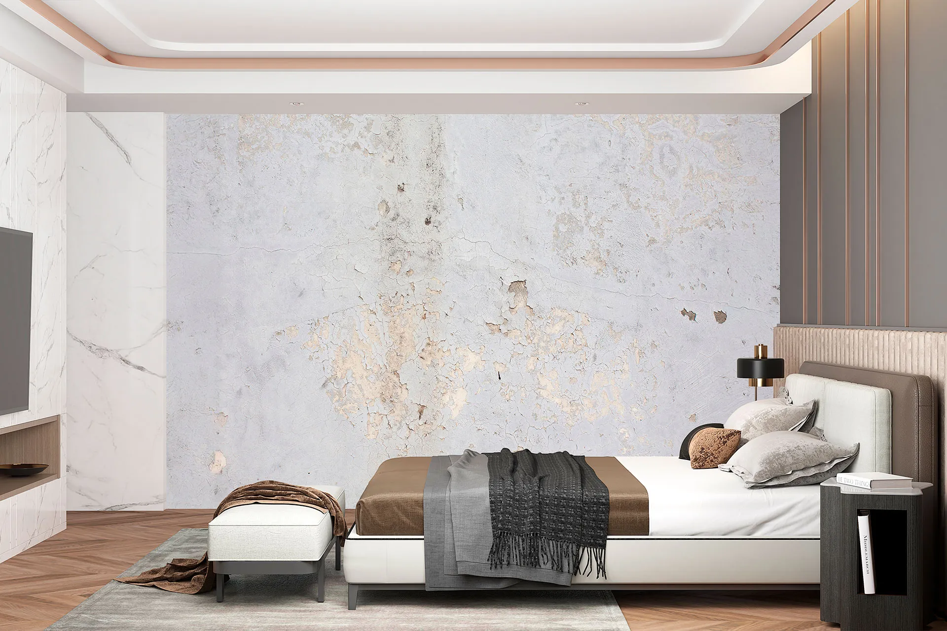 Матеріал преміум ФрескаФлізелін, гаряче тиснення, до 360 г/м² Ціна матеріалу: 589 грн/м² (з урахуванням знижки 45%) Насиченість кольору: 5.0 / 5.0 Преміальна текстура "фреска". Щільний довговічний матеріал, екологічний і естетичний.