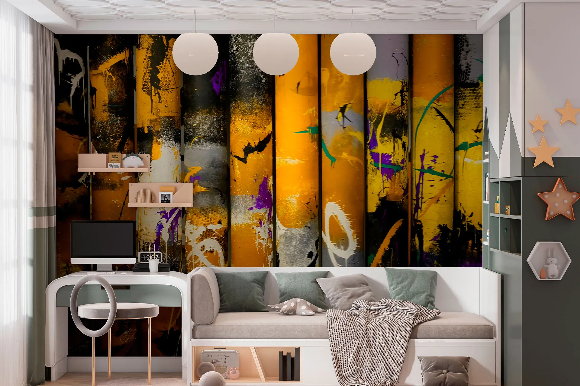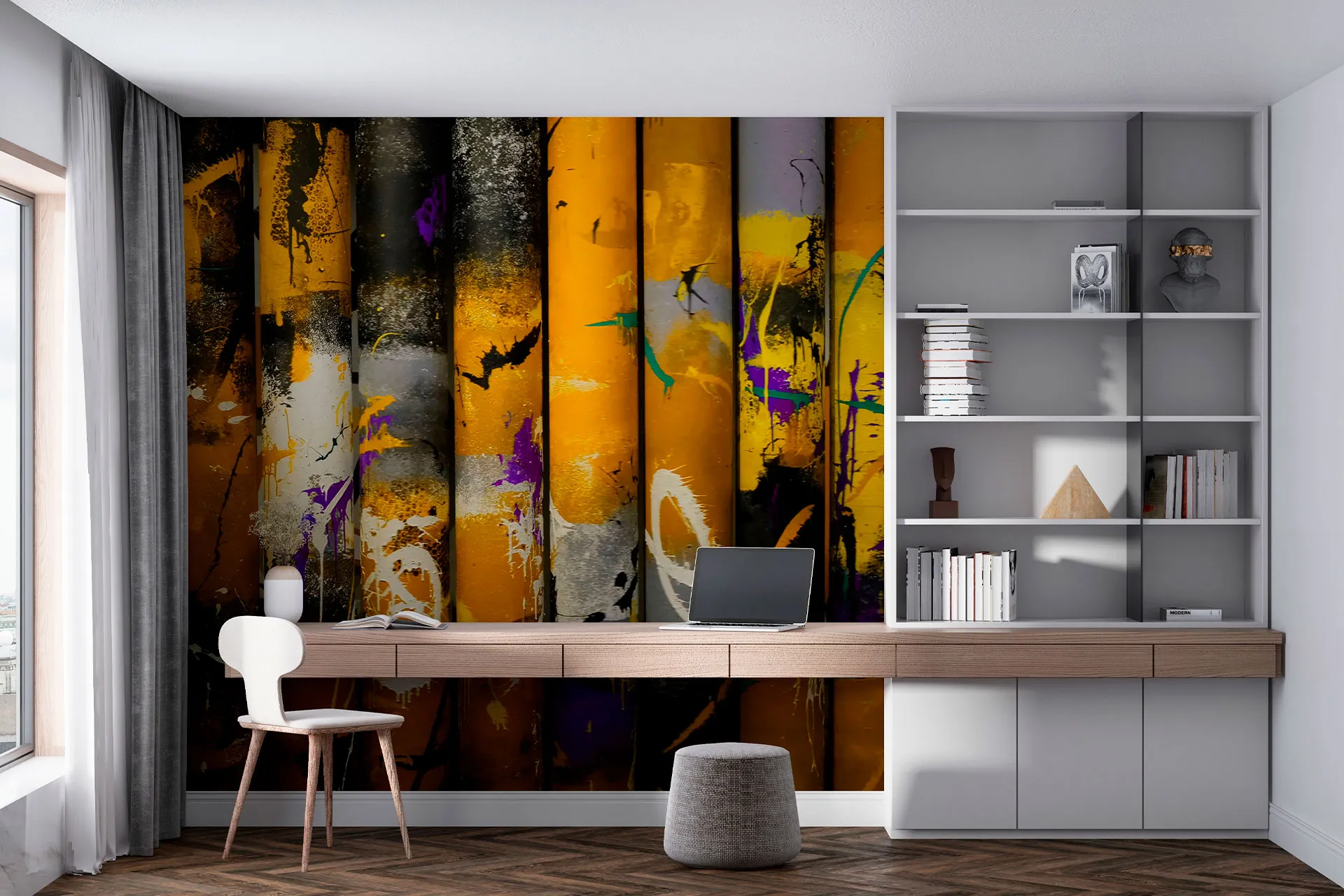 Матеріал преміум ФрескаФлізелін, гаряче тиснення, до 360 г/м² Ціна матеріалу: 589 грн/м² (з урахуванням знижки 45%) Насиченість кольору: 5.0 / 5.0 Преміальна текстура "фреска". Щільний довговічний матеріал, екологічний і естетичний.