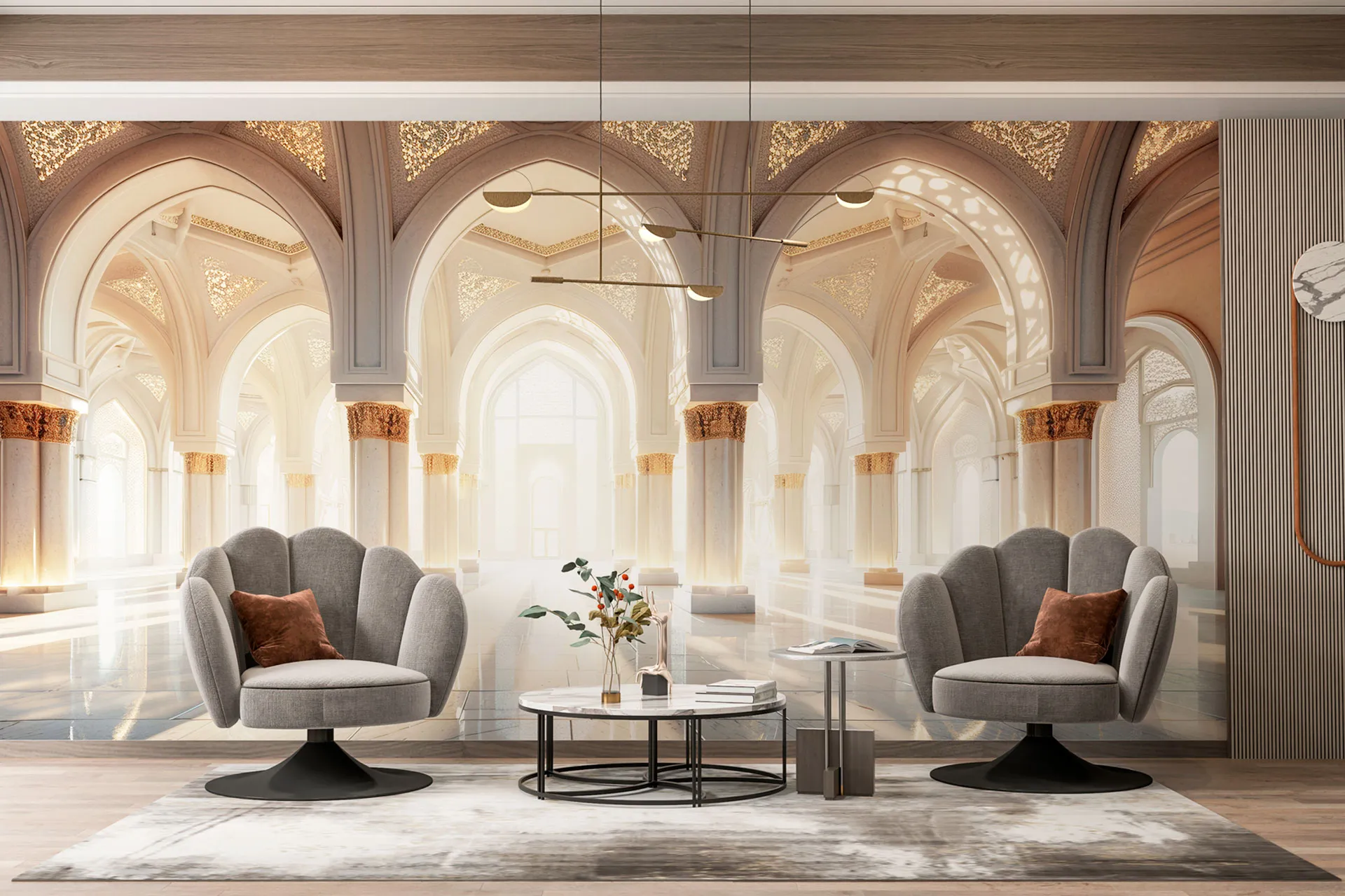 Матеріал преміум ФрескаФлізелін, гаряче тиснення, до 360 г/м² Ціна матеріалу: 589 грн/м² (з урахуванням знижки 45%) Насиченість кольору: 5.0 / 5.0 Преміальна текстура "фреска". Щільний довговічний матеріал, екологічний і естетичний.