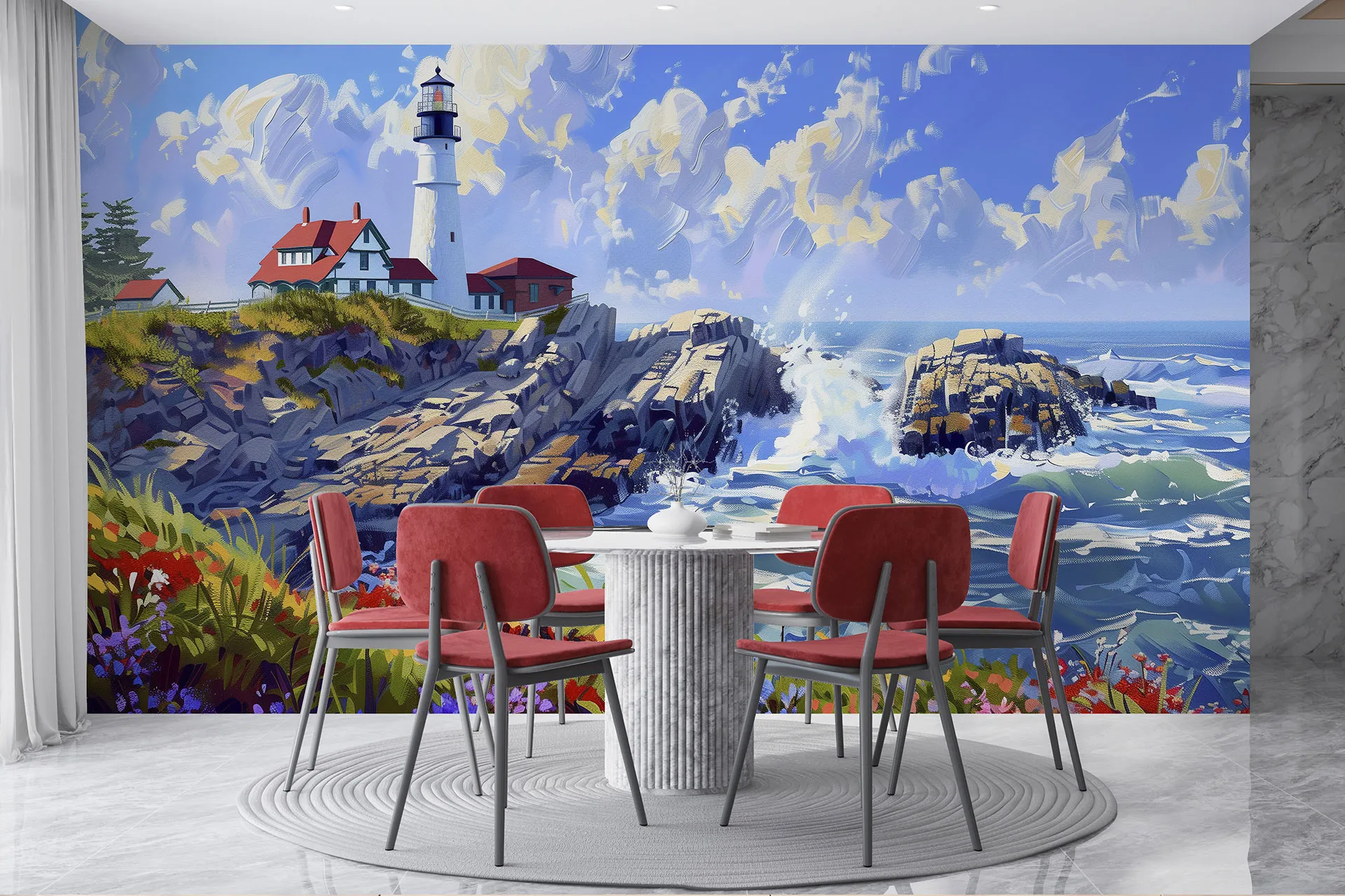 Матеріал преміум ФрескаФлізелін, гаряче тиснення, до 360 г/м² Ціна матеріалу: 589 грн/м² (з урахуванням знижки 45%) Насиченість кольору: 5.0 / 5.0 Преміальна текстура "фреска". Щільний довговічний матеріал, екологічний і естетичний.