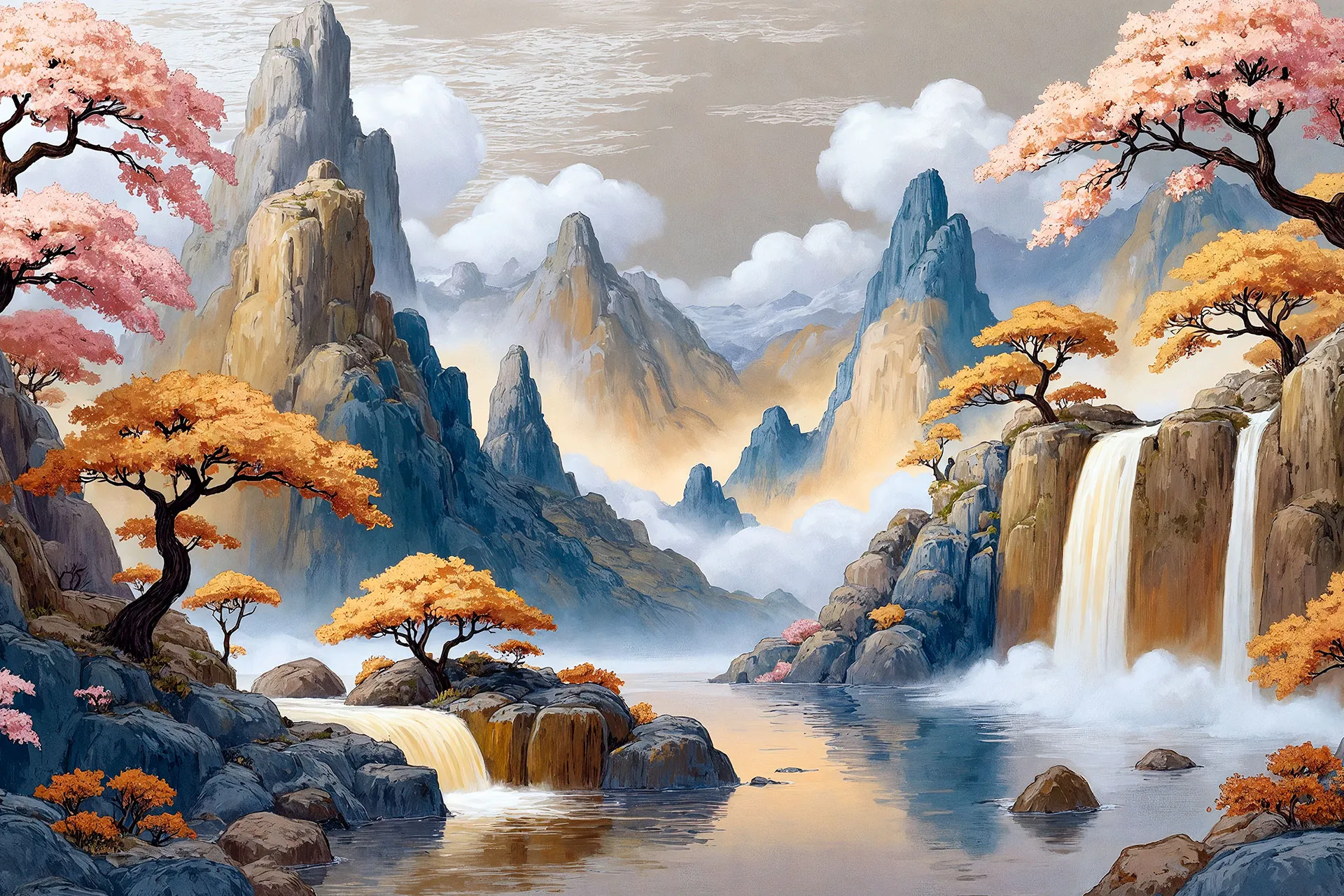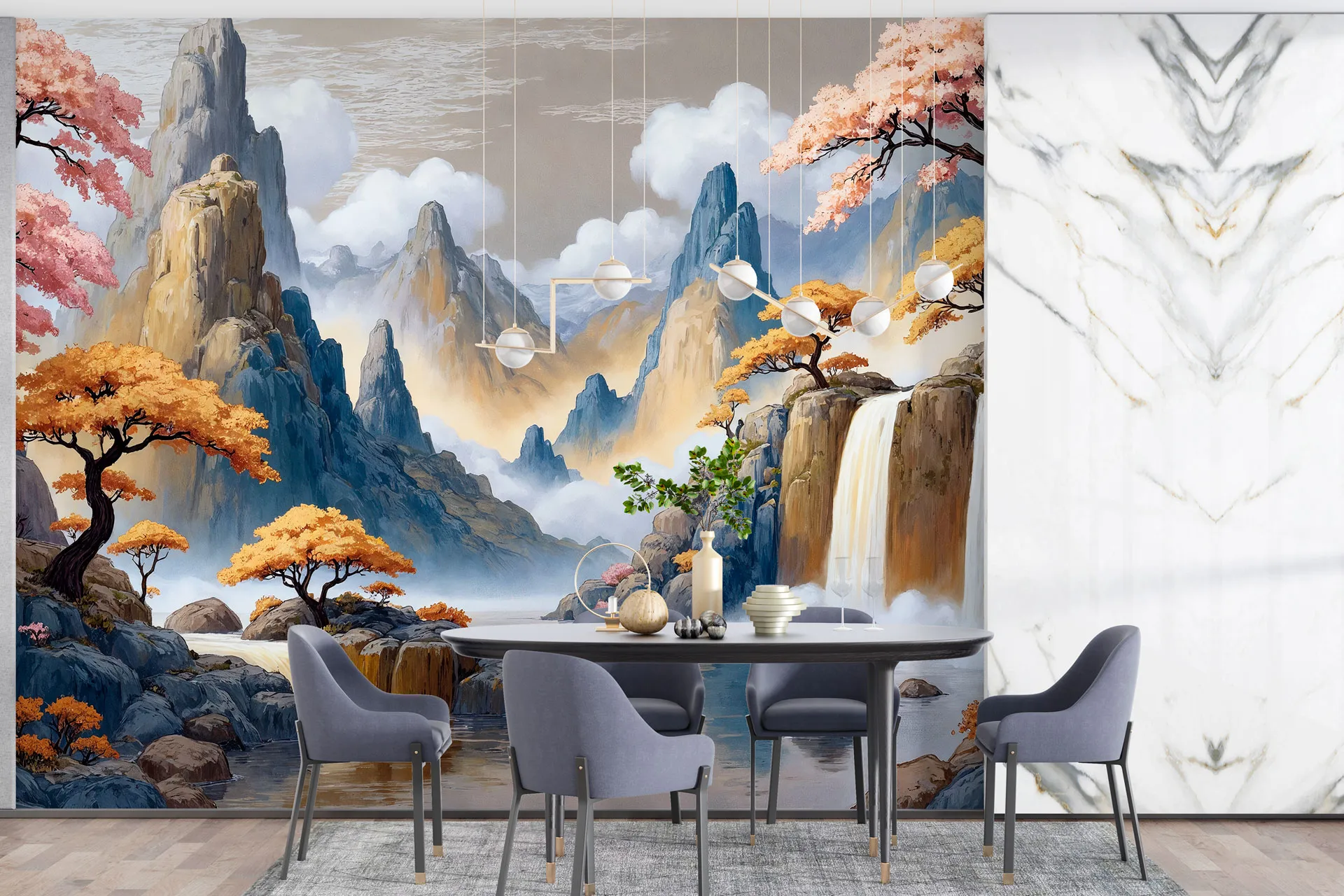 Матеріал преміум ФрескаФлізелін, гаряче тиснення, до 360 г/м² Ціна матеріалу: 589 грн/м² (з урахуванням знижки 45%) Насиченість кольору: 5.0 / 5.0 Преміальна текстура "фреска". Щільний довговічний матеріал, екологічний і естетичний.