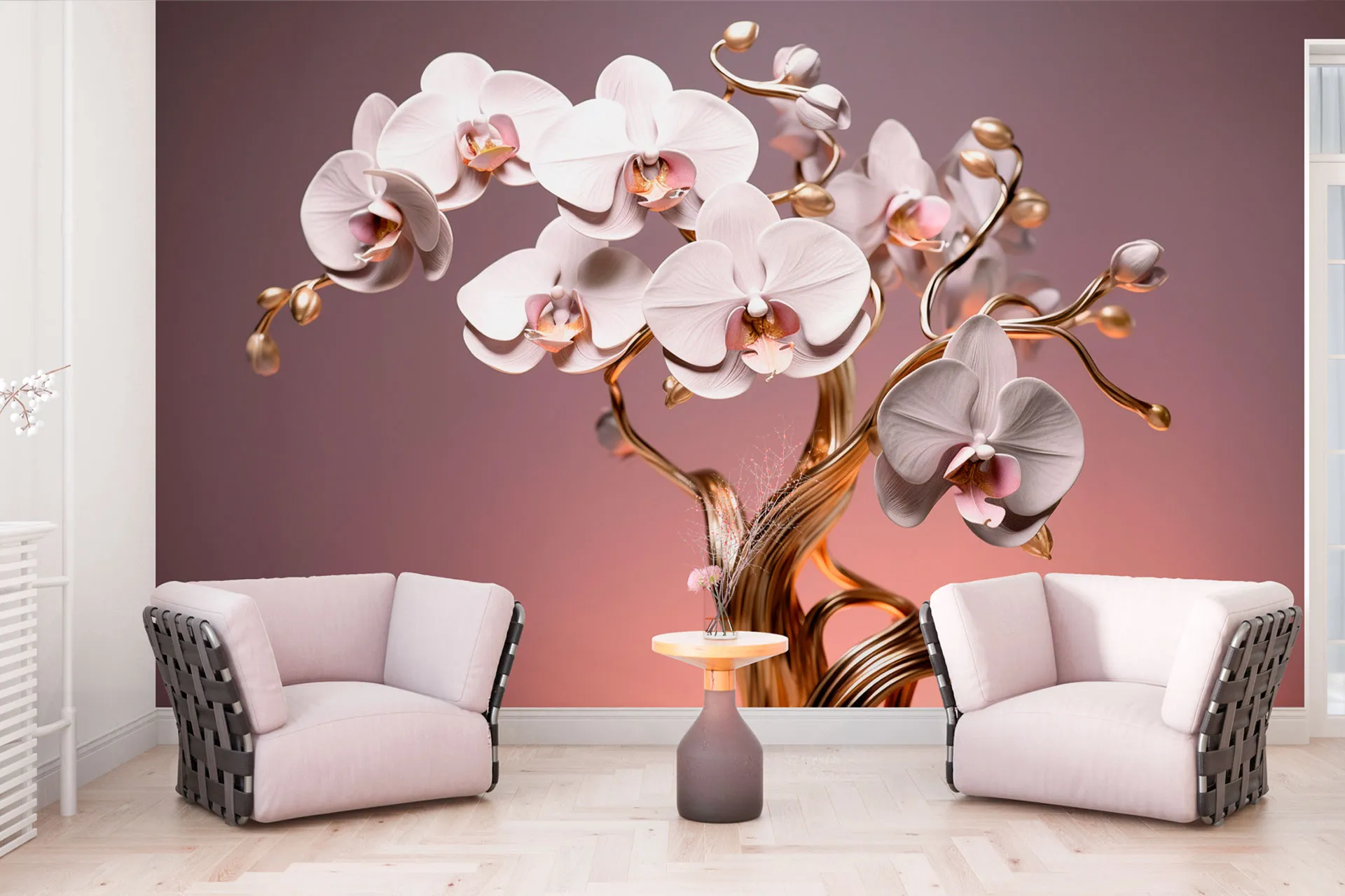 Матеріал преміум ФрескаФлізелін, гаряче тиснення, до 360 г/м² Ціна матеріалу: 589 грн/м² (з урахуванням знижки 45%) Насиченість кольору: 5.0 / 5.0 Преміальна текстура "фреска". Щільний довговічний матеріал, екологічний і естетичний.