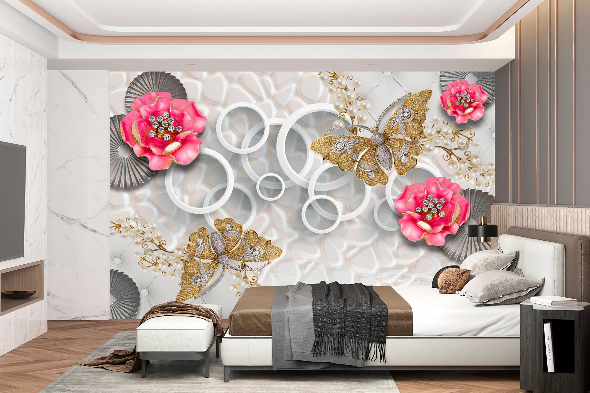 Матеріал преміум ФрескаФлізелін, гаряче тиснення, до 360 г/м² Ціна матеріалу: 589 грн/м² (з урахуванням знижки 45%) Насиченість кольору: 5.0 / 5.0 Преміальна текстура "фреска". Щільний довговічний матеріал, екологічний і естетичний.