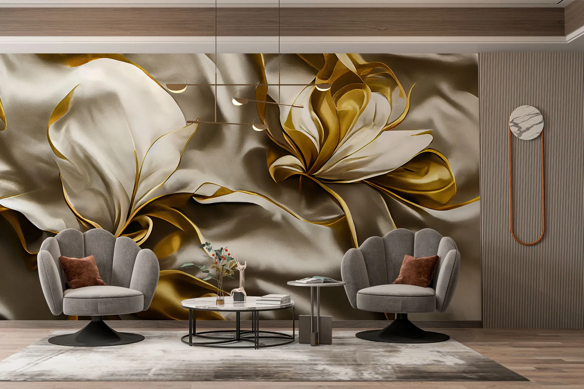 Матеріал преміум ФрескаФлізелін, гаряче тиснення, до 360 г/м² Ціна матеріалу: 589 грн/м² (з урахуванням знижки 45%) Насиченість кольору: 5.0 / 5.0 Преміальна текстура "фреска". Щільний довговічний матеріал, екологічний і естетичний.