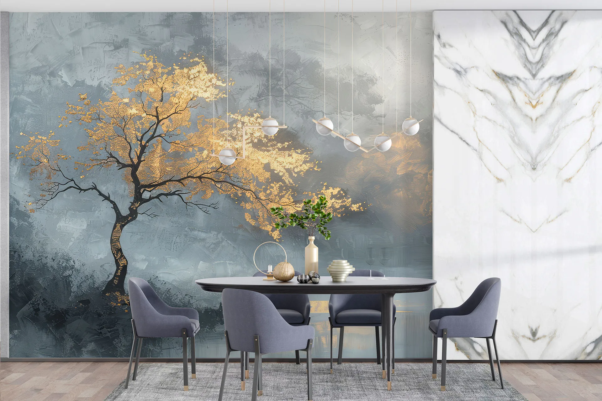 Матеріал преміум ФрескаФлізелін, гаряче тиснення, до 360 г/м² Ціна матеріалу: 589 грн/м² (з урахуванням знижки 45%) Насиченість кольору: 5.0 / 5.0 Преміальна текстура "фреска". Щільний довговічний матеріал, екологічний і естетичний.